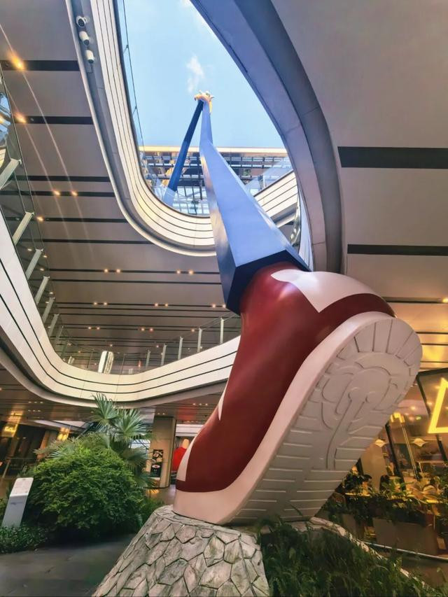 巨型滑板鞋装置伫立于苏河湾万象天地,以一步跨越两层的开阔姿态,承载着突破与探索的意趣。硬朗线条与空间相映,尽显潮玩活力与艺术质感。
